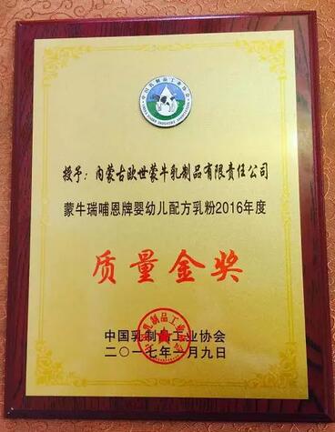 蒙牛乳业作为中国乳制品领军企业,一直将质量安全作为工作的重中之重,严格执行质量安全生产规范体系,其旗下蒙牛瑞哺恩牌婴幼儿乳粉凭借100%抽查合格率的优秀成绩,被授予2016年中国乳制品工业协会“质量金奖”。该奖项不仅是对于蒙牛瑞哺恩在质量安全工作上的认可,更是鼓舞了全员新一年的士气,以国际标准严苛要求生产,不仅在国内,在国际上也要占有一席之地!