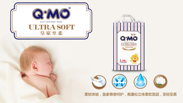 基于这样的痛点和发现,Q·MO(奇莫)开拓新的市场需求,推出了皇家至柔系列纸尿裤,汲取了恒安集团22年专业婴儿护理经验和22年的匠心工艺技术,准确定位高端婴儿精细化护理,选材品质对标一线国际大牌,用国际高端品质,为“新国货”品牌形象正名。