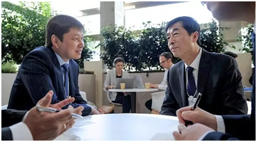 吉尔吉斯斯坦总理萨帕尔伊萨科夫与伊利集团执行总裁张剑秋(右一)在达沃斯探讨乳业合作前景