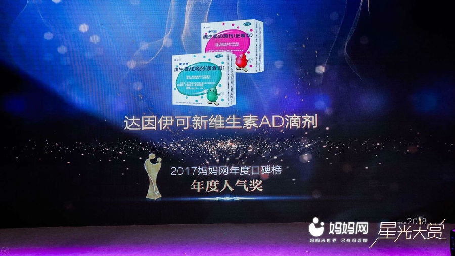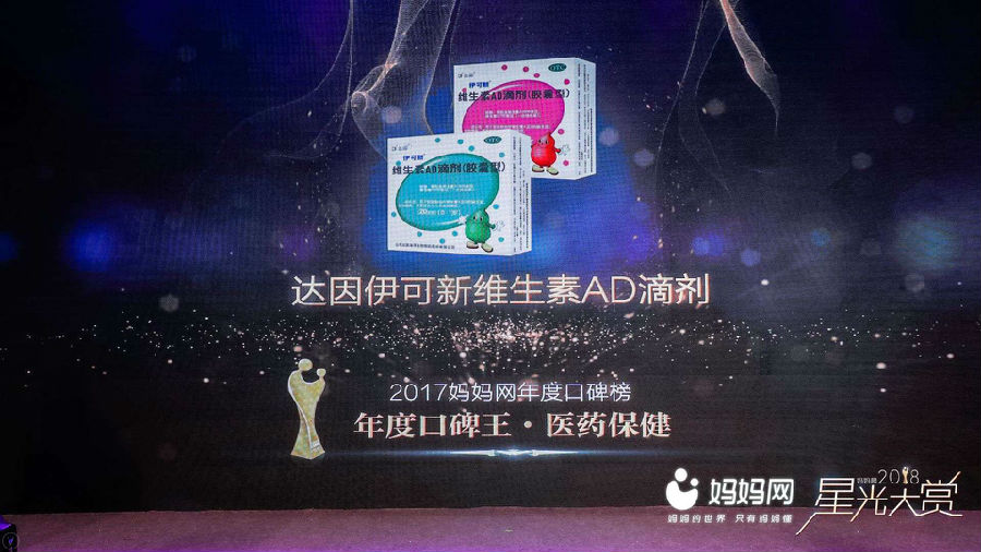 2018年1月30日,母婴行业年度盛事——“妈妈网2018星光大赏”暨“2017妈妈网母婴品牌口碑榜”颁奖典礼在北京圆满落幕,现场可谓是星光熠熠、大咖云集!与此同时,母婴界最具权威、含金量最高的“妈妈网2017母婴品牌口碑榜”正式揭晓,60多个深受妈妈喜爱的国内外品牌集体亮相。伊可新作为备受千万中国家庭信赖和认可的“育儿神器”,旗下明星产品伊可新维生素AD滴剂斩获“年度口碑王·医药保健”和“年度人气奖”两项大奖,伊可新益生菌粉系列则荣膺“红人品鉴奖”,成为名副其实的口碑大赢家!