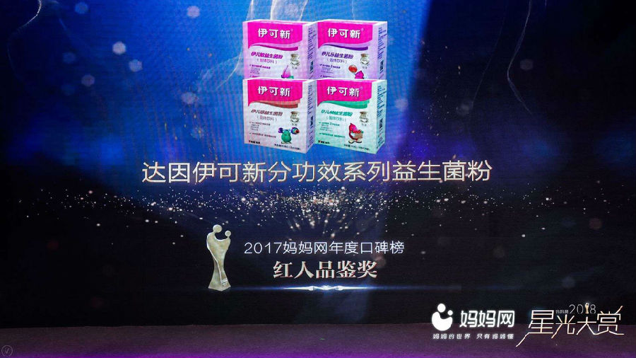 随着“二孩”政策的落地,中国主流家庭人群结构不断优化,母婴市场释放巨大潜力的同时伴随着消费升级大势的到来,因而迫切需要更适合、更细分、更能够满足其需求的产品和服务。伊可新作为儿童健康领域的“元老级人物”,凭借多年的品牌积累和对中国母婴市场的深入了解,积极实施品牌升级战略,不断丰富产品线,于2016年底全新推出创新配方、细分功效的伊可新母婴营养品系列,旨在针对中国宝宝常见的健康问题和营养需求,提供量身定制、配方科学的营养补充产品。此次斩获“红人品鉴奖”的伊可新益生菌粉系列(伊儿乐、伊儿畅、伊儿感、伊儿敏)就是最具代表力的产品。作为国内首款细分功效配方的益生菌产品,一经上市便掀起行业浪潮,每一款都是爆款单品,而且迅速成为育儿界炙手可热的“网红”产品。