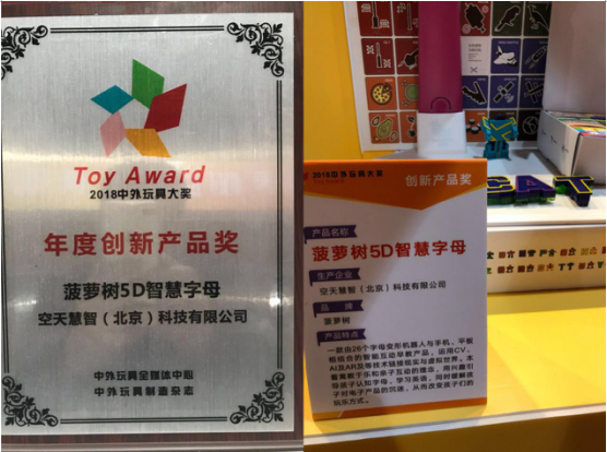 首日,菠萝树除了人气爆棚、门庭若市的的展位现场,更是在台上捧起了2018中外玩具年度创新产品奖这个大奖。这个大奖经过在玩具市场行业中的专家团评审和大众征询综合评定而出,可以说产品获得了行业和大众市场的完全认可。