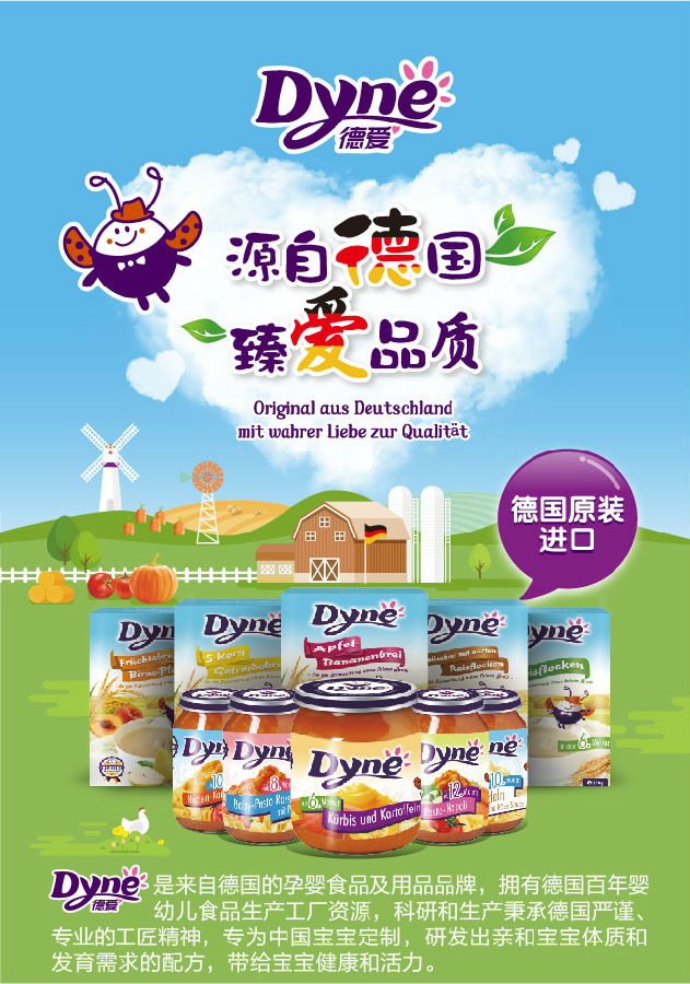 2017年,达因药业再次走在行业前端,引进Dyne(德爱)进入中国市场。这不仅是达因药业走向国际化的重要之举,同时也填补了国内的部分市场空白,强强联手为如今日益壮大的婴儿辅食及用品市场需求提供了更多的优质选择和多元化的体验。这也印证了达因药业多年来秉承企业使命,为中国儿童健康事业而不断奋斗的决心!