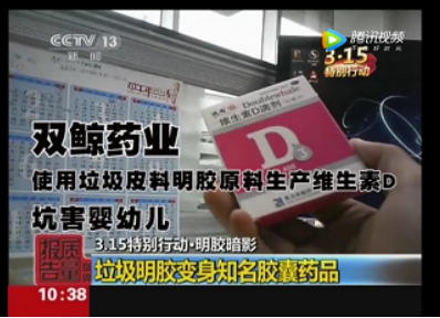 青岛双鲸药业是一家具有几十年制药历史的老牌药企,正是由于信赖,很多家长会给宝宝购买和服用青岛双鲸的“悦而”维生素D软胶囊和维生素AD软胶囊。据了解,青岛双鲸药业每年销售维生素D等软胶囊类药品几千万盒,而如此庞大的数字中有多少是用“毒胶囊”制成的?我们不得而知,但可以肯定的是使用垃圾明胶制成的“毒胶囊”存在重大的安全隐患,服用者,尤其是婴童人群服用后可能会导致严重或潜在的健康问题。