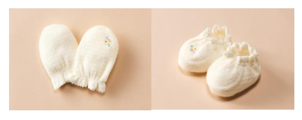另外,婴儿袜也要备一双,可以防止脚部受凉。因为都是无捻线的制品,所以很亲肤呢。