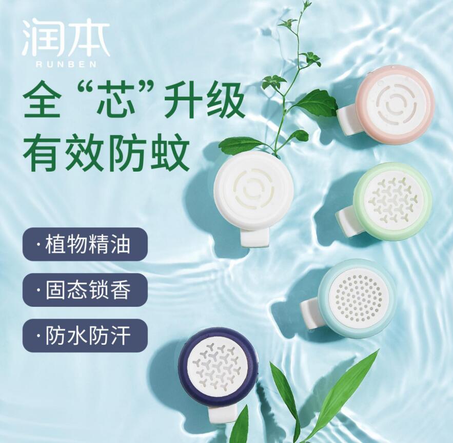 润本新款防蚊扣,由德国红点奖设计团队加持,外型更美观,颠覆传统固态锁香,将芳香精油融入到内芯,突破液体限制,浓缩固态精油,可更长时间保持香效,防蚊时间更长。