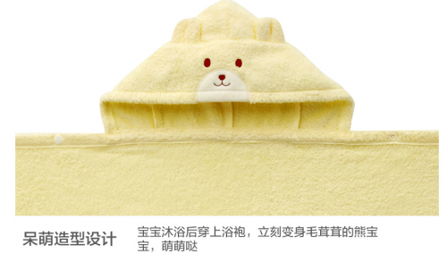 三件套中的披风还能一毯多用,连帽浴袍设计,方便浴后包裹,既可做包被,也可在宝宝长大后游泳池玩水时,用来包裹身体,避免着凉。毛茸茸的熊宝宝造型设计,更显出浴宝宝的可人。无捻线的手感轻柔,吸水性和保暖性俱佳,严格把控细节的高质量产品。