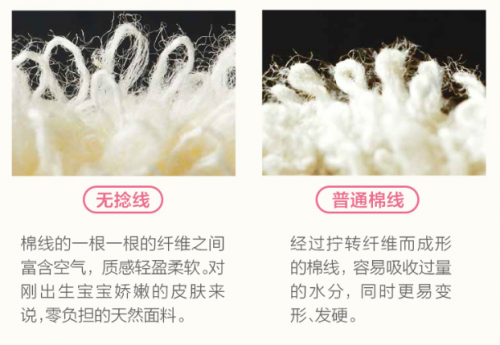 无捻线之所以蓬松柔软,是因为它由特殊工艺制作而来,纤维之间富含空气。图片如下,是不是肉眼可观的柔软?