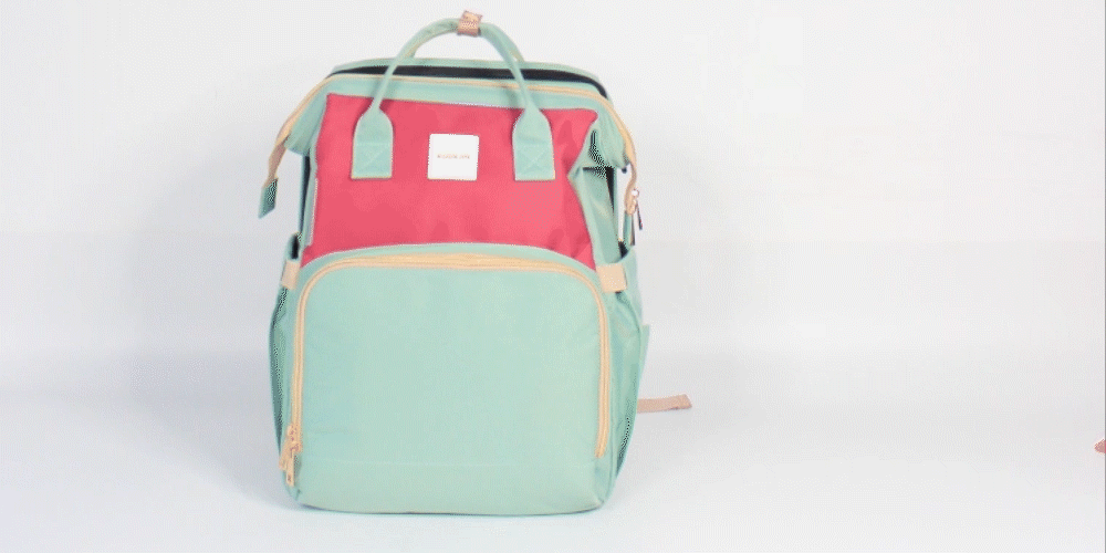 该款产品配备具有颠覆性的功能:隐藏在妈咪包背部的“折叠宝宝床”。(床的尺寸适用于1岁以内月龄的宝宝)。