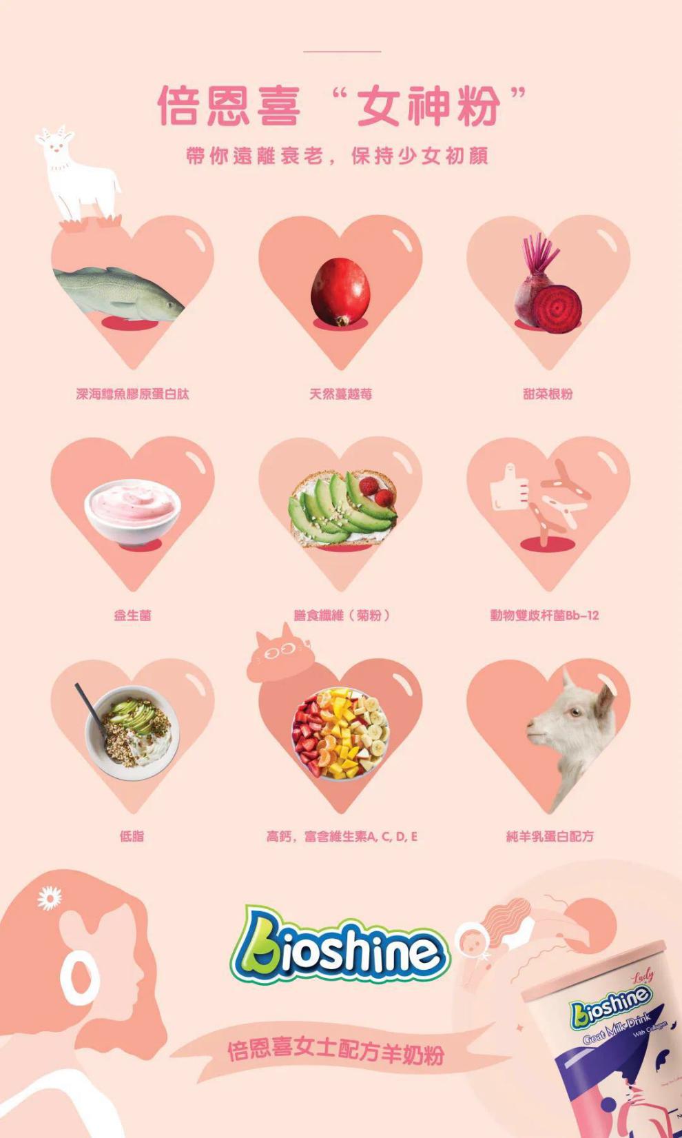 同时倍恩喜还推出关爱妈妈们的女神粉——倍恩喜胶原蛋白羊奶粉,纯羊乳蛋白配方,高钙低脂,富含多种维生素,让妈妈们远离衰老,唤醒活力,重回初颜,做回女神!