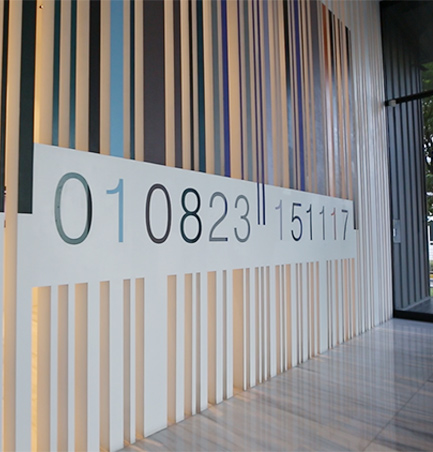 品牌大楼首先映入眼帘的就是品牌代码墙,“010823”为德玛莉品牌成立时间,“151117”为德玛莉总部CAREGEN集团上市代码。