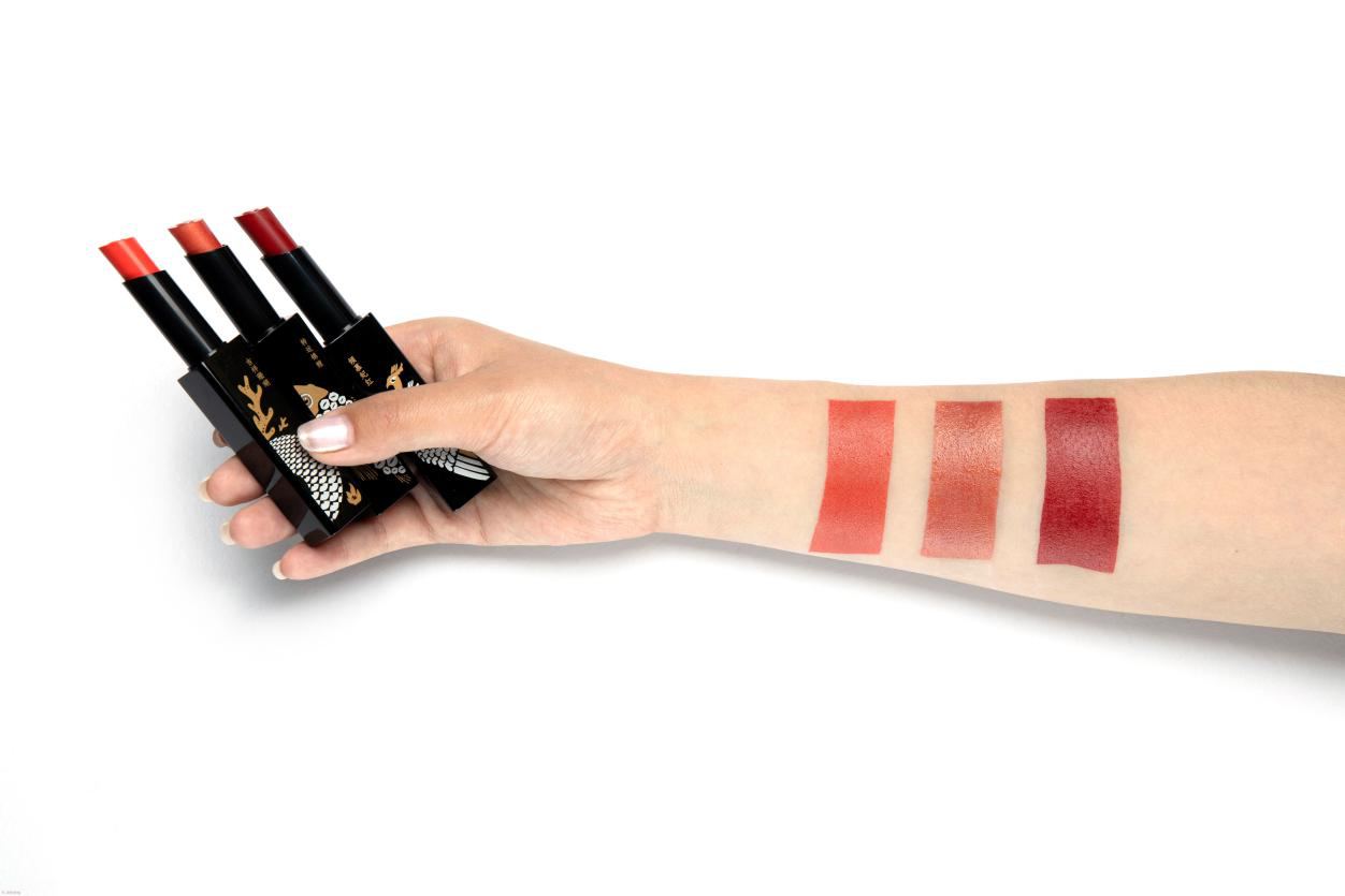 这也是这款唇膏外观设计的灵感来缘,细长的管身,握于手中感觉轻盈婀娜,正如洛神女神的窈窕身姿,纯黑色的外观大气婉约,绘以孔雀,鹿角等独具古典特色的图案,充满复古质感。唇膏一开一合间,磁体吸盖会发出清脆的“TITA”声,令上妆成为一个愉悦的过程,俏皮有趣,光看这颜值,都值得入手。