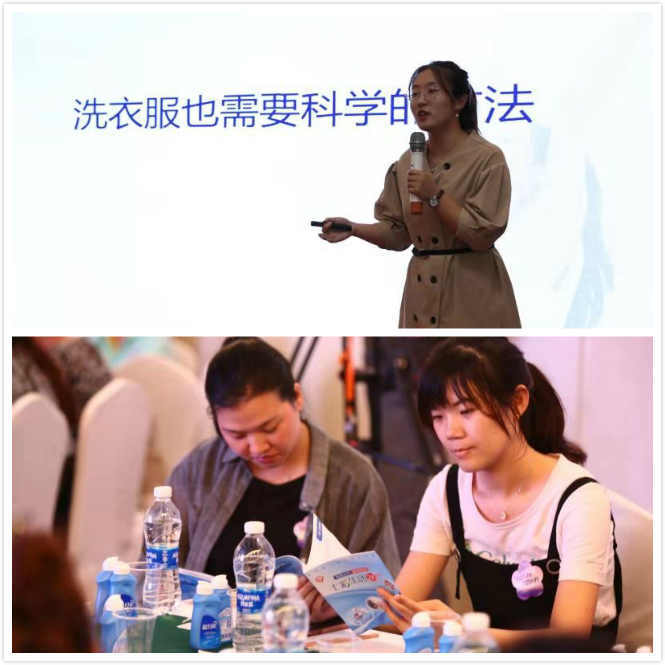 俗话说,佛靠金装,人靠衣装。服装的整洁得体直接影响着女性带给他人的第一印象。活动中,代程程老师带来了衣物清洁洗涤的专业知识。她从污渍的种类入手,介绍了清除油渍的干衣预涂法、清除色渍的色渍浸泡法以及清除隐形污渍的奶渍浸泡法。随后,通过让女性朋友现场亲自体验和实践,了解科学洗衣的神奇魔力。秋天到了,毛衫衣物纷纷派上了用场。代程程老师特别为大家介绍了毛织物的洗护方法:1、查看衣物标签,确认衣物应该干洗还是水洗;2、如果可以水洗,优选手洗,机洗需选择柔和程序,并使用衣物洗护袋;3、晾晒时,需在阴凉处晾干,避免阳光曝晒;4、用中温垫布反面熨烫。