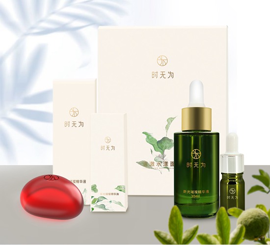时无为当下推出的‘新光璀璨’系列产品,主要包括旗下四款产品:新光璀璨精华液、新光璀璨精华油、清澈水漾面膜、永和密旨洁面皂。