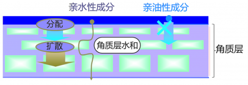 化妆品中的透皮吸收是指化妆品中的有效成分,按产品的有效性作用于皮肤表面或进入表皮或真皮,并在该部位积聚和发挥作用的过程。一般认为,透皮吸收渗透的主要屏障来自角质层。角质细胞与细胞间脂质形成“砖墙结构”,其中“砖墙”代表角质细胞,它由角蛋白、非纤维蛋白和少量脂质组成;“灰浆”则指角质细胞间隙中脂质。