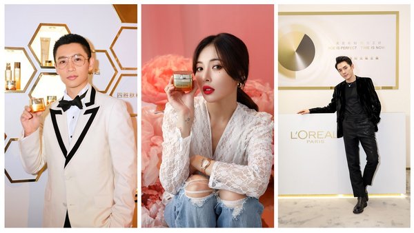 从左至右:歌手魏晨、舞者泫雅、断货王李佳琦打卡欧莱雅时光概念展