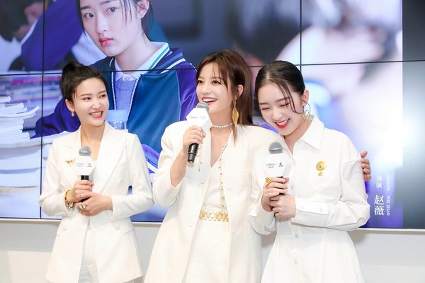 导演赵薇携手演员杨子姗邓恩熙出席发布会(从左至右:演员杨子姗、导演赵薇、演员邓恩熙)