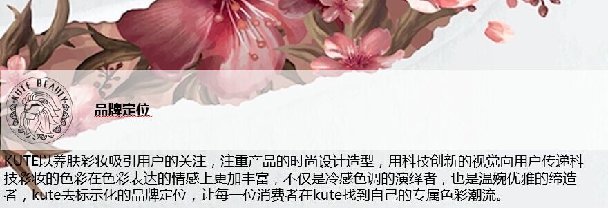保持真正的优雅(Keep Up True Elegance),是KUTE彩妆的品牌内涵,也是品牌名的由来。这个来源于加拿大的护肤级彩妆品牌有着自己的设计语言,它理解文化、关注科技、善于用色彩将自然与社会生活融为一体。
