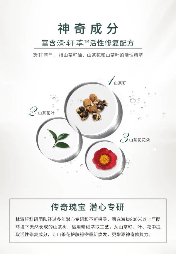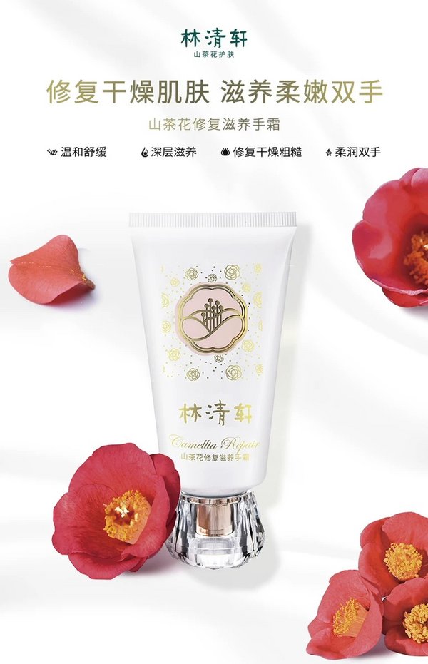 为减少细菌滋生,需要勤洗手,做好个人防护。但多次洗手也会造成手部肌肤干裂。林清轩山茶花手霜中含有其热卖产品山茶花润肤油,被称为可以用在手上的山茶花油。山茶花油是林清轩深耕近十年的领域,其实早在一千多年前,山茶花油的修复作用在《本草纲目》、《岭南草药志》中均有记载,古人尤其是客家人把山茶花花瓣碾碎并混合山茶籽油涂抹在皮肤发痒、发干处,达到修复肌肤的效果。林清轩通过对山茶花花、叶、籽等萃取后,获得具有神奇修复作用的“清轩萃TM”修复配方,把山茶花油修复肌肤屏障的功效发挥到最大。