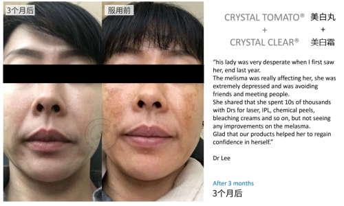 2014年新加坡国家皮肤中心公布《水晶番茄对黄褐斑治疗效果》的临床验证论文报告,临床研究是由新加坡国家皮肤中心,Steven Thng教授(Head of Pigmentary Disorders)带领团队完成。临床研究显示,服用美白丸和外部涂用美白霜的84天后,黄褐斑的面积严重程度得到显著改善,皮肤达到亮白效果。