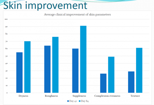PhytoflORAL®已经获得了大量的临床和体外研究,它的生物活性也得到了证实,研究者还通过基因表达分析进一步阐明了它的疗效。在一项长达84天的临床试验中,研究人员发现,PhytoflORAL®表现出了显著的光保护效果,摄入PhytoflORAL® 42天之后,82%的受试者出现了皮肤亮白的效果,并在84天之后效果进一步增加。此外,受试者还报告了皮肤的光泽、均匀性、水合性和柔韧性,发现他们的皮肤在视觉上更健康,对太阳光的伤害也更有抵抗力了。