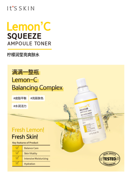 IT’S SKIN正式推出大容量爽肤水“柠檬润莹亮爽肤水”,呈现满满新鲜柠檬的清新之感。
