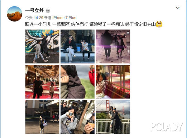 李亚鹏微博原文,并附上九宫格图,照片中,李嫣打扮潇洒不羁,街头潮范儿十足,小小年纪时尚品味直逼妈妈王菲。