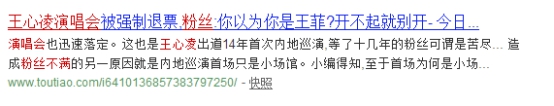 虽然是首次巡回演唱会,但粉丝们似乎并不买账,演唱会上座率不高不说,开场前还因为主办方米锐克缺乏操盘经验,强制退票连累艺人,惹怒粉丝怒怼王心凌:你以为自己是王菲?开不起就别开!作为一个公众人物,如果再犯这类的低级错误,恐会葬送在内地的发展机会。