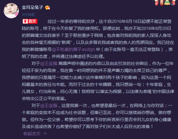 2016年王宝强和马蓉的离婚事件可以说在很长一段时间内一直都是人们关注的焦点,而这么长时间过去了,二人的离婚事件仍没有一个定论,近日王宝强的妻子马蓉首度登上微博,回应自己在这场婚变中的态度,其中也不乏一些指责口气。