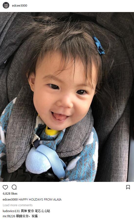 25日早,陈冠希在其个人社交平台晒出了一张自己女儿Alaia的照片,并配文“HAPPY HOLIDAYS FROM ALAIA”祝广大网友节日快乐。照片中小公主戴着蝴蝶结发卡,吐出俏皮的小舌头笑得十分可爱。水灵灵的大眼睛也被网友称赞长得像爸爸。