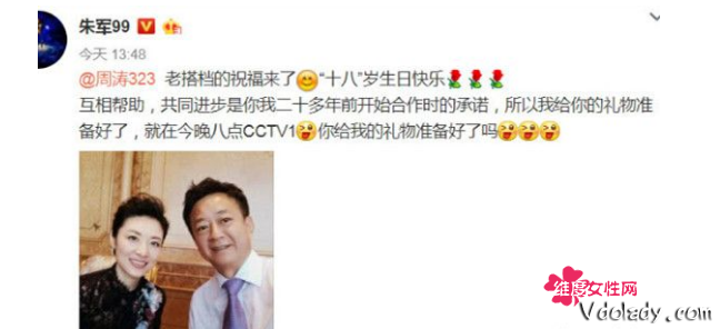 维度女性网 > 明星 > 周涛生日朱军暖心送祝福 老搭档友谊羡煞网友(2)