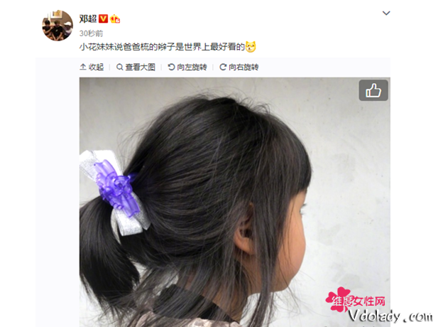 近日,邓超给女儿梳辫引起很多网友关注,原来,邓超在微博里晒出自己给女儿扎辫子的照片,照片中的小花一头辫子惨不忍但邓超却自豪的说,女儿夸他扎的辫子是最好的!令网友好笑不已,下面一起来看看。