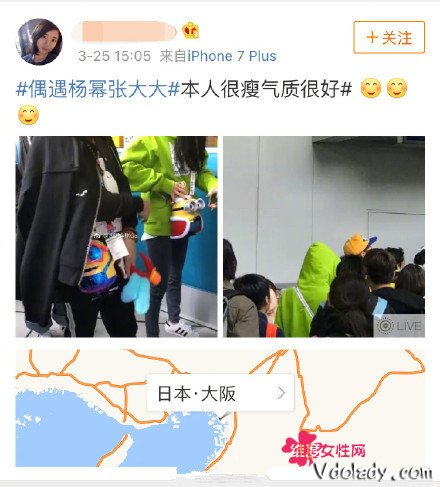 杨幂、杨颖和张大大是圈中好友,三人曾多次在微博晒合影。3月25日,有网友在日本偶遇杨幂和张大大,并通过微博晒两人合影,并称:“偶遇杨幂张大大,本人很瘦气质很好!”照片中,张大大披着黑色连帽卫衣,双手抱在胸前,身旁的杨幂绿色卫衣,遮挡严实,身材纤细高挑。 随后,不少粉丝围观并评论:“好可爱啊,社会姐果然是驾驭什么都可以的!”,也有网友调侃张大大:“只有我觉得张大大像杨幂身边的助理吗??”