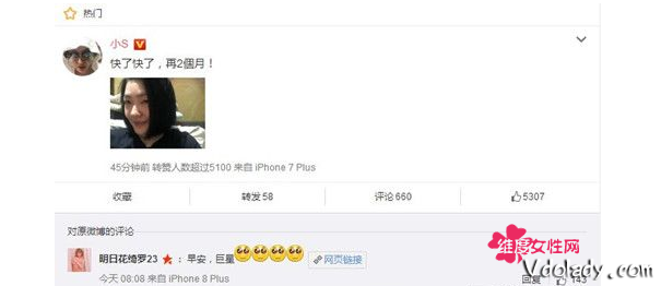 小S在网上晒出一组自拍 再等两个月是什么意思