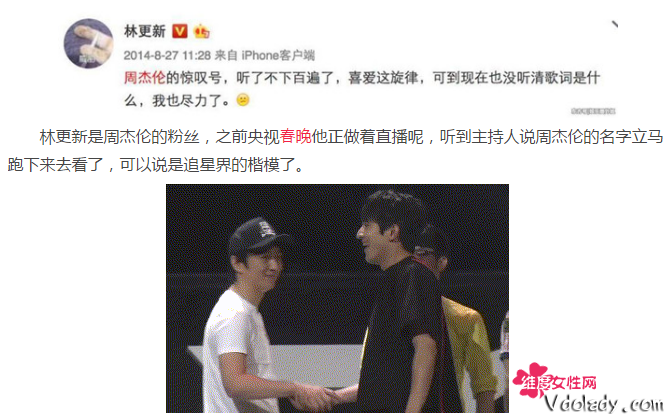 维度女性网 > 明星 > 林更新分享周杰伦视频 分享偶像正能量粉丝措手不及(3)