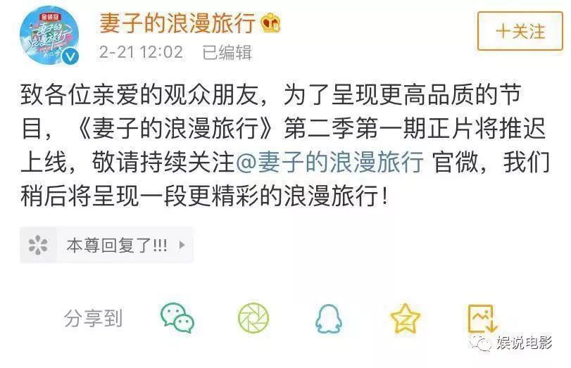 《妻子的浪漫旅行2》第一期要开播的时候,很多粉丝都等着看,结果十二点正一直没有推出,节目组还发了微博。而在延迟的节目播出后,细心的网友们发现章子怡的戒指竟然被打码了,章子怡超大戒指为什么被打码呢?