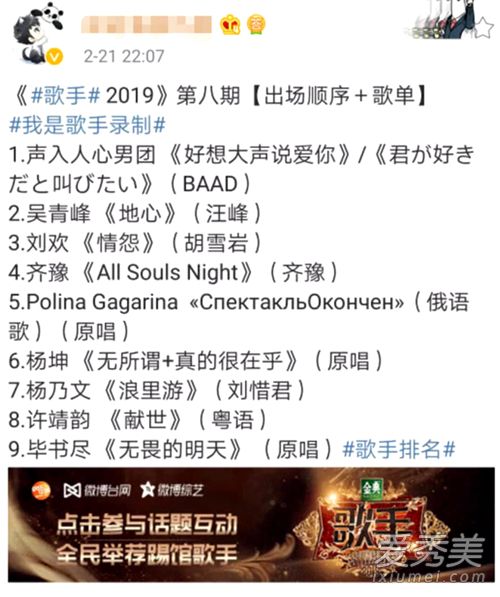 《歌手2019》第八期将在3月1日播出,作为2019年第一季度唯一的音乐综艺真人秀,虽说《歌手》在收视率方面不如人意,但是,整体从关注度和话题量来说还是非常高,每周五都是热搜榜的常客!