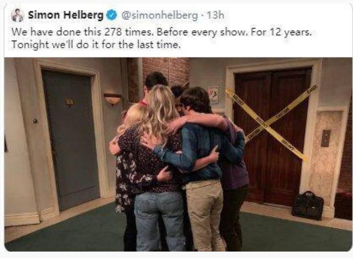 5月1日,《生活大爆炸》最后一集宣布正式杀青。该剧主演“谢耳朵”吉姆·帕森斯、“佩妮”卡蕾·库科 、“莱纳德”约翰尼·盖尔克奇、“霍华德”西蒙·赫尔伯格、“拉杰什”昆瑙·内亚、“艾米”马伊姆·拜力克和“伯妮”梅丽莎·劳奇最后一次同台。“霍华德”西蒙·赫尔伯格分享了一张他们紧紧相拥的合影,纪念这一珍贵时刻。