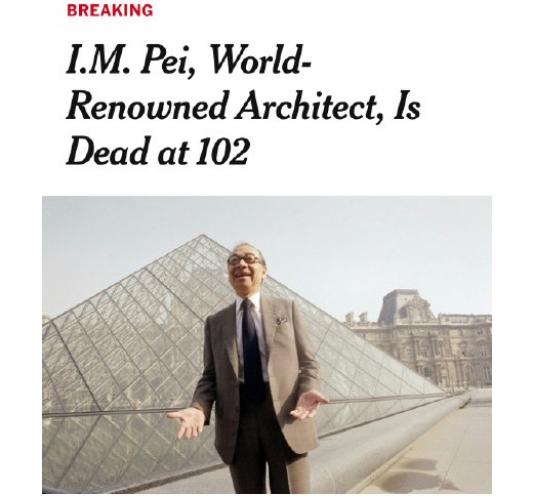 据相关媒体报道得知,当地时间5月16日,享誉世界的华裔建筑大师贝聿铭去世,享年102岁。贝聿铭最著名作品包括法国卢浮宫的玻璃金字塔等。据悉,贝聿铭曾拥有102岁的设计人生,他投身建筑事业70年,美国成为他的事业起点,项目遍布中美法德等全球各地。