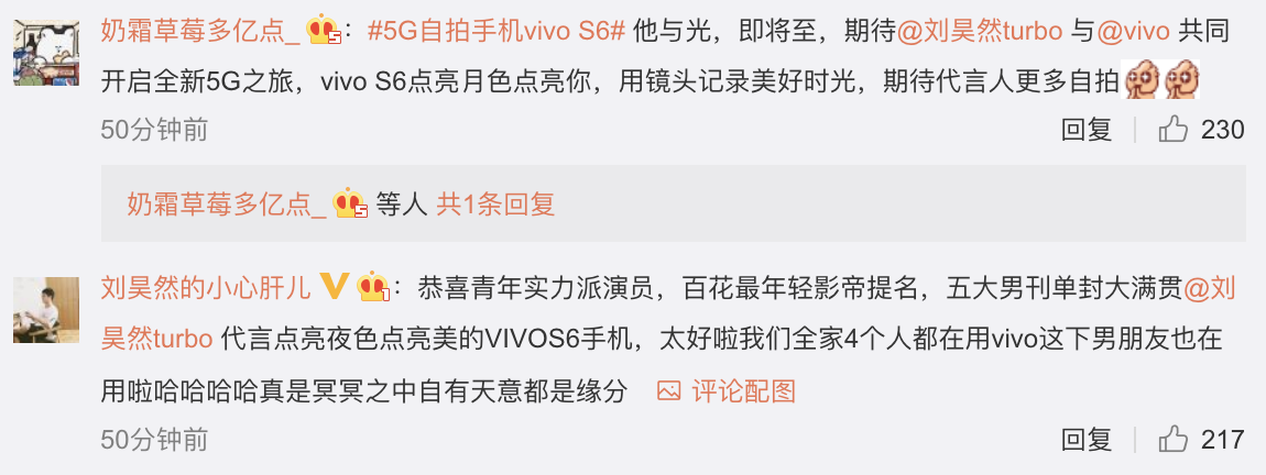 这不,今日vivo更是直接官宣刘昊然代言vivo S6的信息~