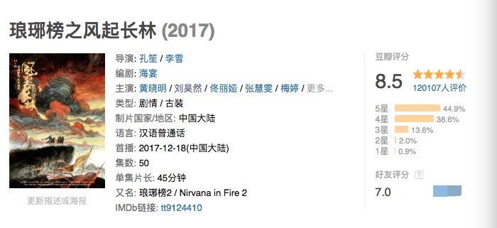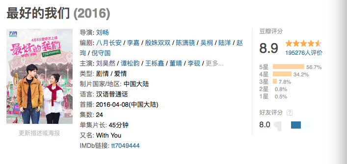 之后,刘昊然相继出演电影《建军大业》、《妖猫传》、《唐人街探案》系列、《最好的我们》、《琅琊榜之风起长林》,每年都有作品和观众见面,保持超高作品产出度的同时,也一步步向大家展现自己演员的实力。挑大梁的《最好的我们》和《琅琊榜之风起长林》,在豆瓣上评分高达8.9和8.5。