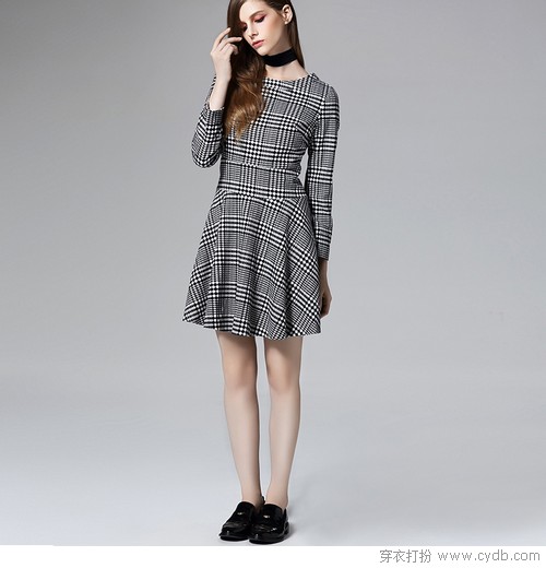 03 格子不曾离开,只是每年侧重点会有些不一样,配色低调的黑白格纹任何时候都经典,游离在英伦风情与法式风格之间,典雅而不乏朝气,活泼A字裙型和平底鞋颈巾走知性少女风。