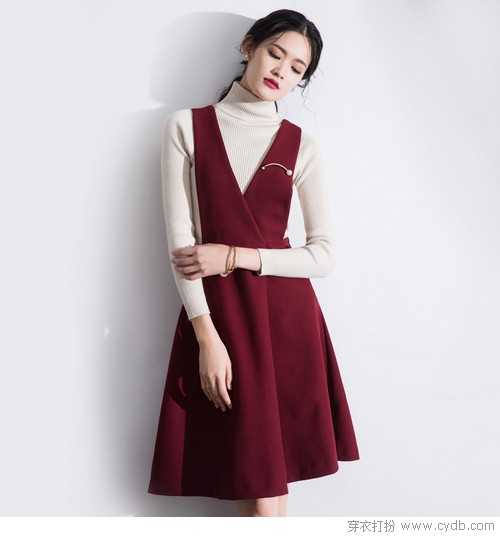 02 裙摆的温柔还要优雅色泽的陪衬,才能衬托出女人的娇媚动人。想要消减冷风的寒意,内敛而温暖的酒红色是不错的选择。搭配今冬流行的背带元素,美丽时尚轻松掌握。