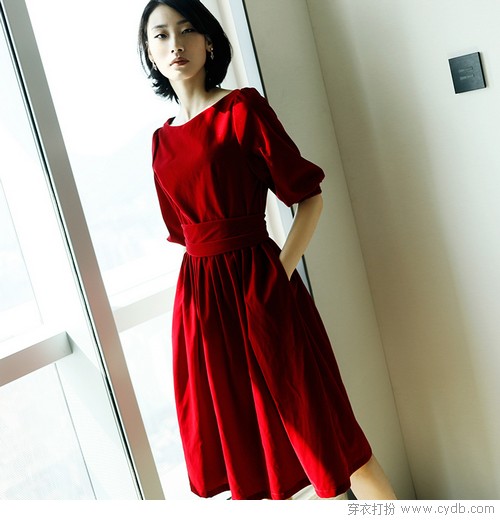 02 红色裙装可以轻松自如的展现成熟妩媚,简洁的线条不带过多的装饰,金丝绒的材质让整体更富光泽感,浓郁的复古气息扑面而来,时尚中袖打破长裙的沉闷,让整体活泼起来。