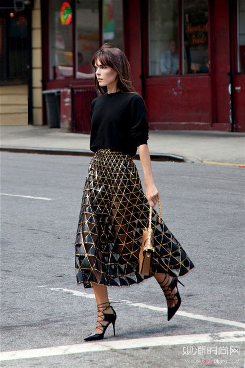 黑色纱裙也是今年十分火热的时尚单品,印花设计增加了衣着细节感,显得更加精致动人。同时黑色也十分显气质,彰显强大魅力。