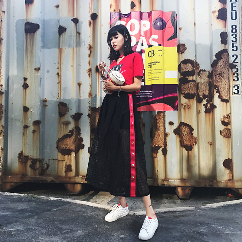 三、港味T恤网纱阔腿裤套装时尚两件套