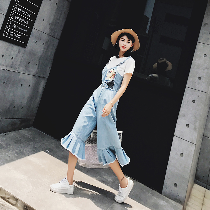 这一款背带连体裤简直就是小编的最爱,穿上它,你还怕吸引不了别人的目光吗?它会让你在人群中瞬间脱颖而出,它的独特性实在让小编喜欢不已,牛仔阔腿背带裤,给人可爱时尚质之感,而它腿部的白色设计搭配上毛边,简直青春靓丽到不行。上衣的人头图案可爱又俏皮,充满了设计感和时尚感。