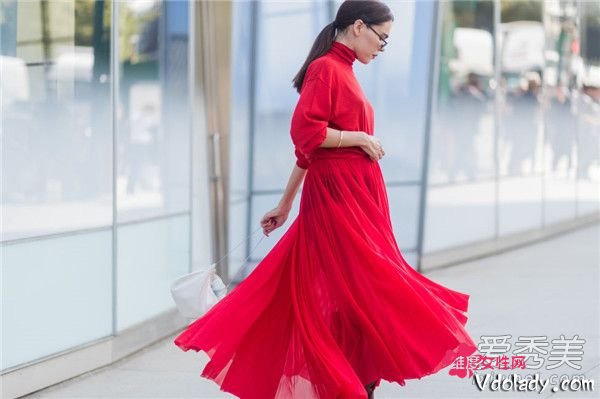 红色系穿搭并没有想像中困难;以相异材质的上下身制造出one tone搭配的层次感,其余单品则可选择无彩度的黑与白,使抢眼的红成为整体造型的焦点。