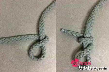 三、卫衣帽子绳子花结。 这种方法相较前两种,复杂得多,需要两根绳子同时操作,小编的图也比较简略,可能需要大家发挥一下想象的空间。第一步,需要打一个活结,拉出的一个活扣要短,这样后面的造型才足够好看。然后像左图一样,将另一端往下穿出。再按照右图所示步骤,先换到活扣一端绳子,将末端往上穿出,再换到另一端按照箭头方向向下穿出。 这种方法穿好之后的效果图可参照简洁图片,是相当漂亮的。当然,大家也可以选择打蝴蝶结,不过,这种方法比较简单,小编就不再介绍了。