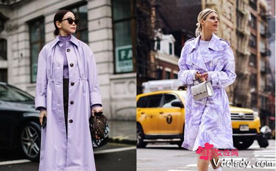 像这样一身紫色的搭配,颜色深浅变化是亮点,上深下浅格外的清新和治愈。除了颜色变化,穿紫色衣服的时候也可以选择有个性一点的款式,绑带上衣+不对称的裙摆,不破坏整体的和谐感,但又增加了亮点。